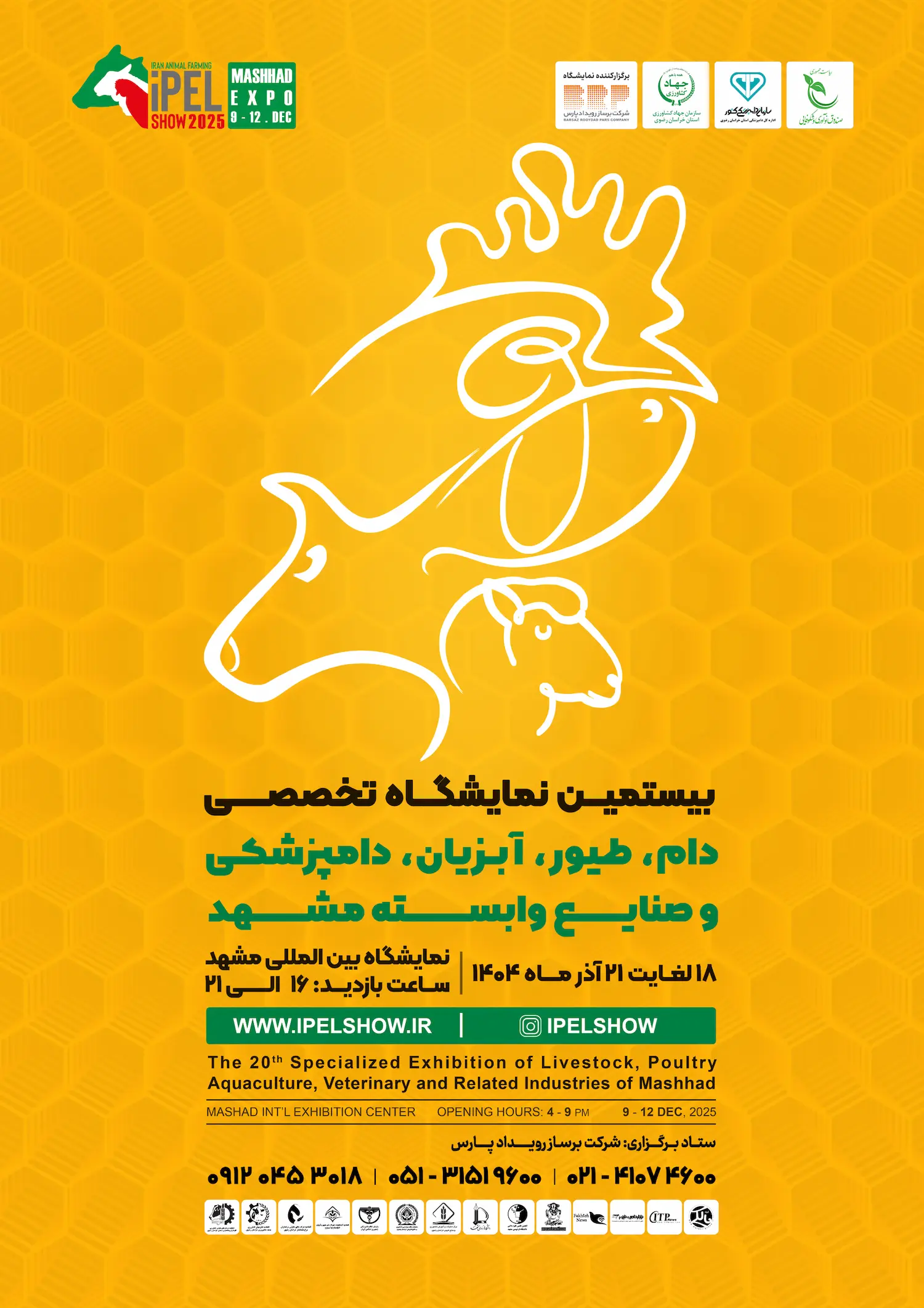 افتخار داریم که در سال 1404 این رویداد مهم را در شبکه ملی نمایشگاههای بینالمللی صنعت دام، طیور و آبزیان در مهمترین قطبهای این صنعت، یعنی اصفهان و مشهد، برگزار خواهیم کرد. این نمایشگاه با ویژگیهای منحصر به فرد خود در ایران و ارائه استانداردهای بینالمللی در حوزه اطلاعرسانی، بازدیدکنندگان و هیئتهای تجاری، فضایی ایدهآل برای تبادل دانش و گسترش همکاریهای تجاری فراهم خواهد آورد.